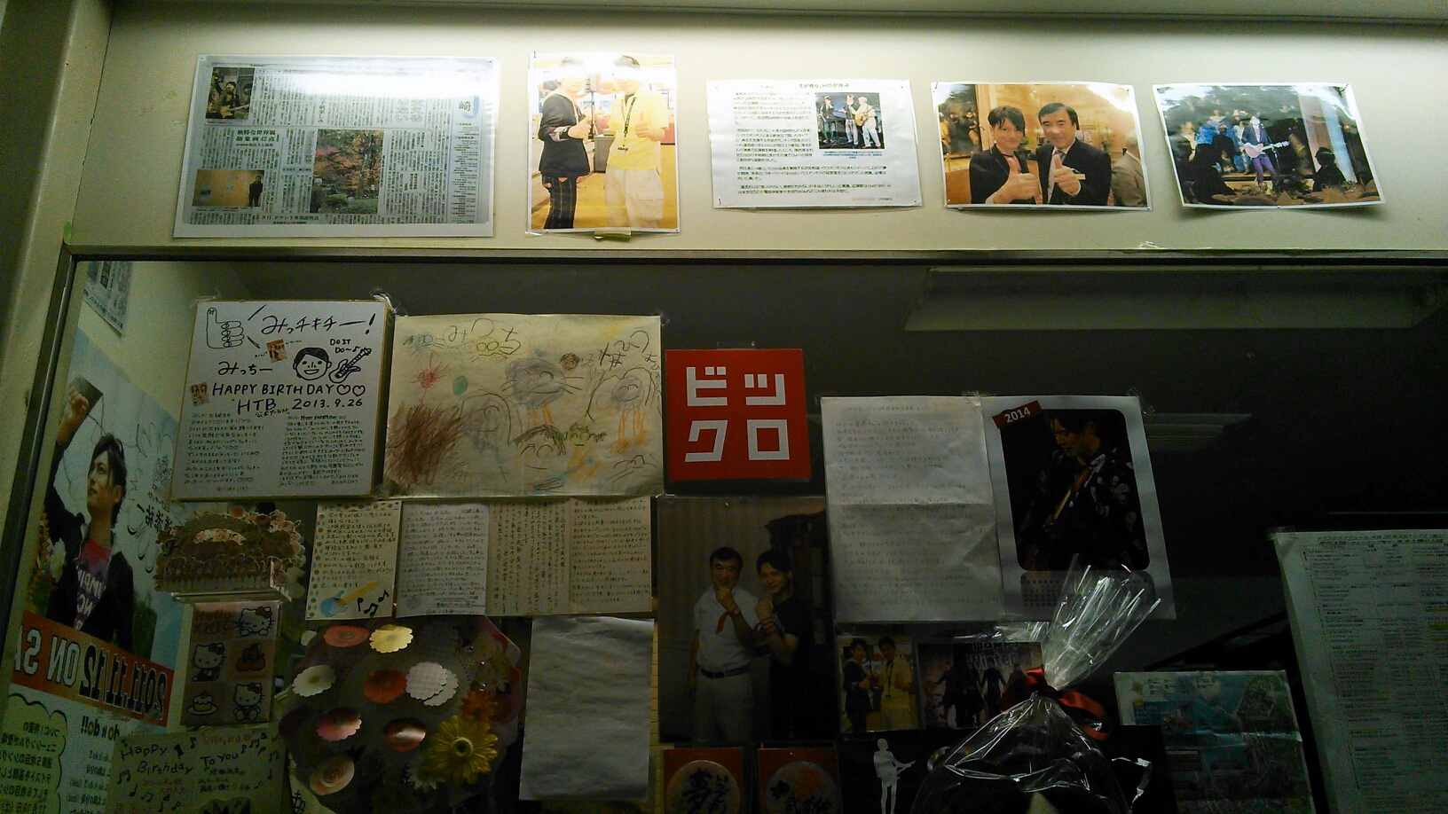 ワールドバザールラストライブへご参加の皆様、ありがとうございました!結果的に武道館まで涙はもちませんでしたが素晴らしい一夜にしてくれてありがとうございました!そして、遠くから心運んでくれた皆様も本当にありがとうございます!立ち続けれた影に常にバザールスタッフの協力あってのものでした。今は他のテンポにいった当時からのスタッフもなんか一緒のような気になれて素晴らしい出会いの連続でした。これからは、ワールドバザールエリアからイベント運営という場内のイベントの中枢の部署に所属します!絶対の信頼をもつイベントスタッフと武道館実現に向けて歩き出します!時々、スタッフ業務も手伝います。まずはステージ数が少しの間減りますがまた増やすのでぜひ、ご期待ください!では最後にバザールの楽屋の様子を初公開!皆さんからもらった手紙や写真をいつも目の前に貼って眺めて頑張ることが出来ました!これからはハウステンボスイベント運営道添祐一あてになります。環境の変化に不安はあるけれど、ワールドバザールとスタッフはどこにいても永遠です!ワールドバザールステージ3年半、本当にありがとう。