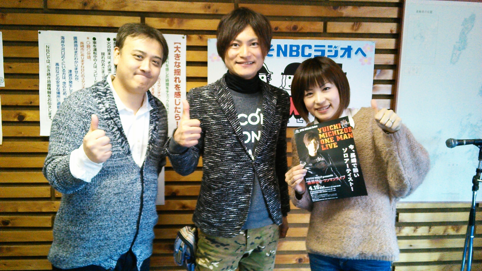 ひさびさのNBC本社でのラジオ出演でした。新曲『LOVERS』の御披露目ではありましたが時間が押してた関係上、フルでかからなくて少し残念。でも、じらしてみた。そんな感じになりましたね。パーソナリティーのお二人には約半年ぶりでしたが温かく絡んで頂きました!↑見切れてるのは今はパートナーとも言える同級生の太っ腹(2つの意味)松崎さんです。ここで嬉しいご報告!アルカス佐世保公演のチケットが残り100席と迫りました!ぜひ、まだご予約やご購入されてない方はお早めにお申込みお願いします!michizoe@m.email.ne.jpハウステンボスライブショーは21日まで1日2ステージになり、新たな展開の準備になります。明日からも全開でいきます!がんばるぞー!